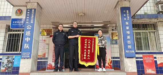 朱家坝派出所民警接到群众电瓶车被盗报警后,立即着手开展走访调查工作,第一时间锁定了犯罪嫌疑人,及时挽回群众经济损失,一面“人民公安恩重如山、办案迅速尽显警威”的警旗表达了群众感激之情及对公安工作的高度认可。